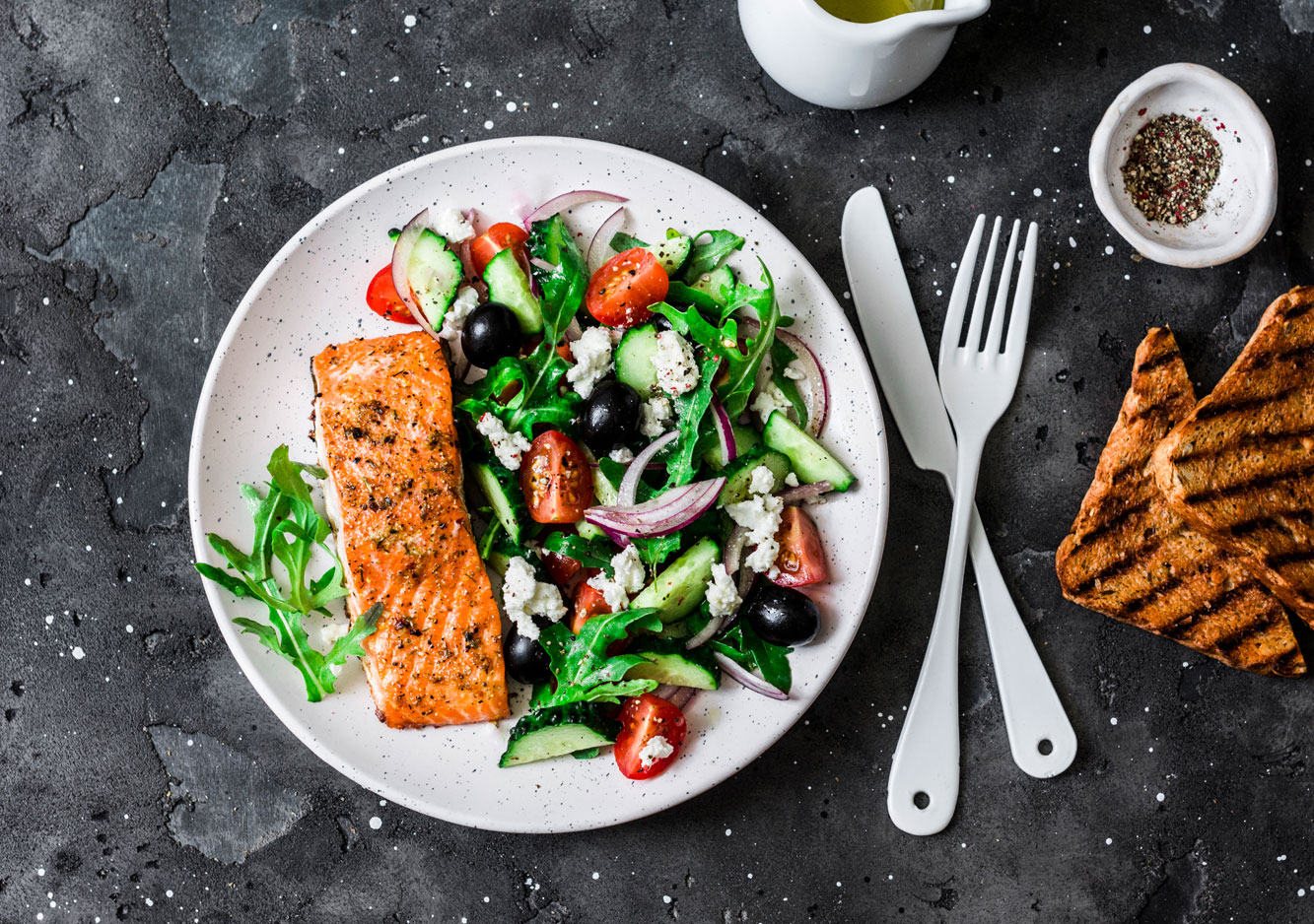 A traditional Mediterranean diet is naturally low in salt, saturated fats, and processed foods. It’s high in healthy fats (such as Omega 3s from fish), antioxidants, and essential vitamins.