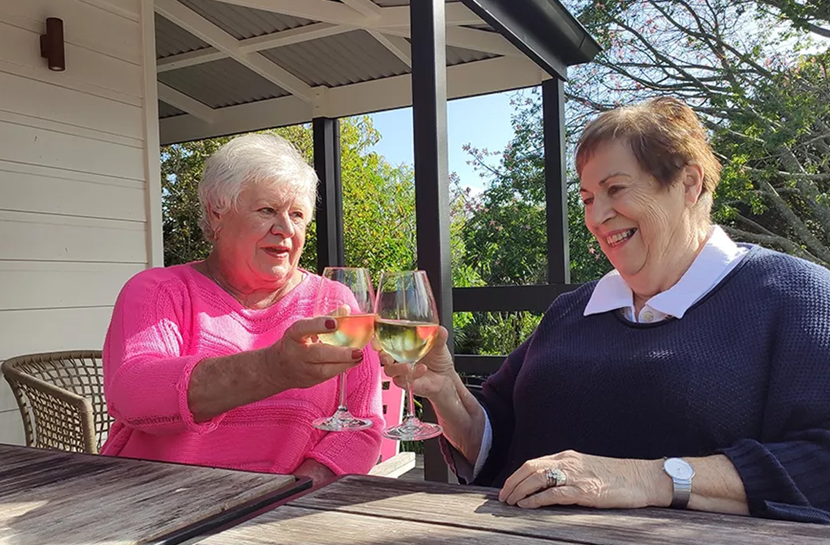 When Arvida Te Puna Waiora resident, Liz Philip was in a leg brace with a broken kneecap - the challenge was getting back from neighbour, Jan Mac’s villa after enjoying delicious meals and more than a few wines!