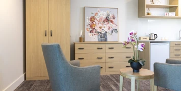 Our modern care suites are light, spacious, and private, each with its own ensuite and space to make it truly yours. Step outside your door and you’ll find open, sun-filled lounges and inviting shared spaces — perfect for catching up with family, enjoying a cup of tea with neighbours, or simply soaking in the relaxed atmosphere.