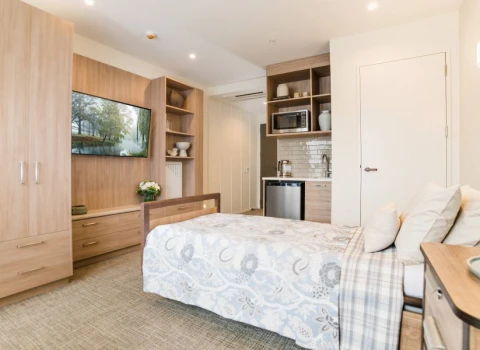 For convenience care suites feature a small kitchenette which includes a refrigerator, microwave and refreshment making facilities. Some care suites also include a washer and dryer. Individually controlled air conditioning enable residents to customise their care suite temperature.