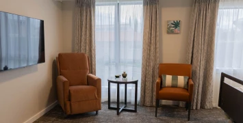 Our premium care suites are warm and comfortable, with space for a television, chair, and some small pieces of furniture. Certified by the Ministry of Health to provide rest home and hospital-level care.