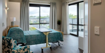 The care home offers modern, high-quality accommodation. Serviced apartments are spacious and feature a double bedroom, ensuite, separate living area with kitchenette, and ample storage. Care rooms are warm and comfortable, with space for a television, chair, and some small pieces of furniture. All accommodation is Ministry of Health certified for rest home level care, and care rooms are also certified for hospital level care.