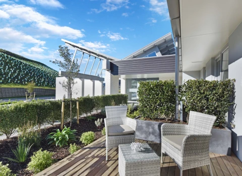 Coastal View offers resthome and hospital level care in the state-of-the-art care centre. Generous suites are available (up to 40m²) with private decking (13m²). They all have individual ensuites and open up to spacious gardens.
