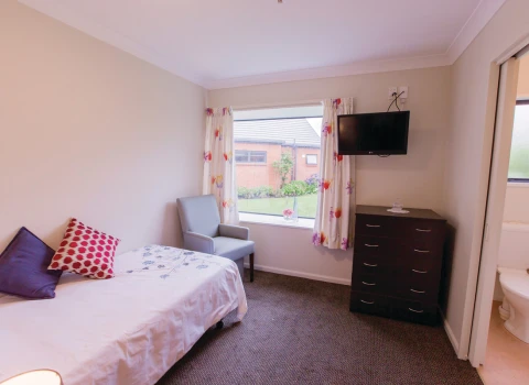 Private rooms are spacious and include monitored call bells. You can choose from a selection of room layouts, all with an ensuite bathroom.