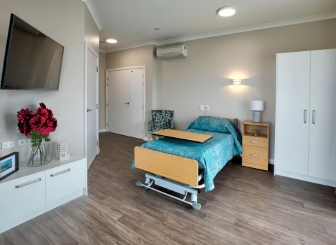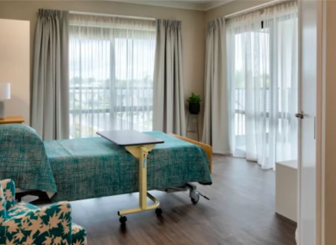 The care home offers modern, high-quality accommodation. Serviced apartments are spacious and feature a double bedroom, ensuite, separate living area with kitchenette, and ample storage. Care rooms are warm and comfortable, with space for a television, chair, and some small pieces of furniture. All accommodation is Ministry of Health certified for rest home level care, and care rooms are also certified for hospital level care.