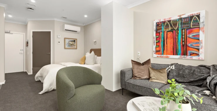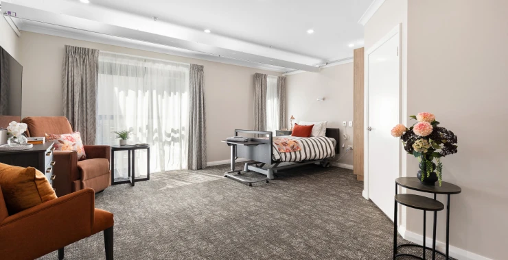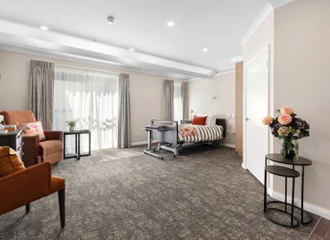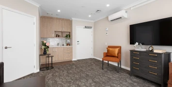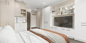 Serviced apartments provide independent living, with a little help on hand. Giving you the confidence that you can increase your level of support as your needs change. These homes feature a spacious separate living area, kitchenette, an ensuite, and 24-hour support nearby.