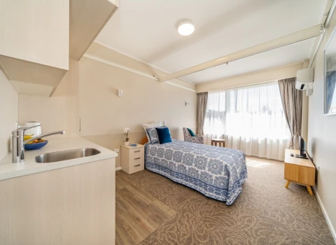 Your room is your own private space, so you can decorate it with your favourite pictures and ornaments. Standard rooms are large enough for a single bed, a chair and a wardrobe or chest of drawers. The cost of a standard room is included in the Care Services Fee set by the DHB. Premium rooms have additional features such as more space, an ensuite bathroom or outdoor access, but you’ll need to pay an extra amount per day to cover the cost of these premium features.