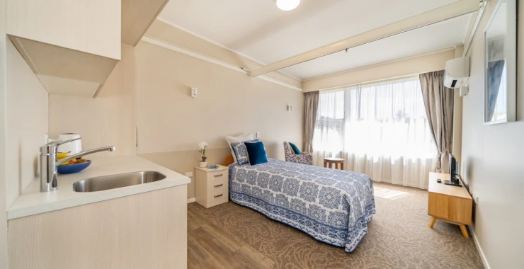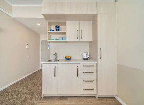 Care Suites provide both Rest Home and Hospital level care, which means you can relax knowing you won’t have the upheaval of moving again if your needs increase. All Care Suites have a heat pump and full en-suite, as well as a kitchenette with a fridge and a kettle – perfect for making a cuppa when friends and family come to visit. You own the right to occupy your Care Suite, so you can personalise it with your favourite furniture and treasured pieces.