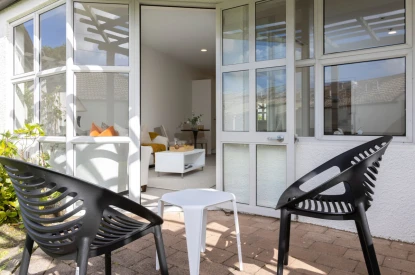 A lovely north facing, ground floor serviced apartment with separate bedroom and private courtyard area accessed from the lounge. Conveniently located to main facilities.