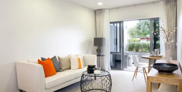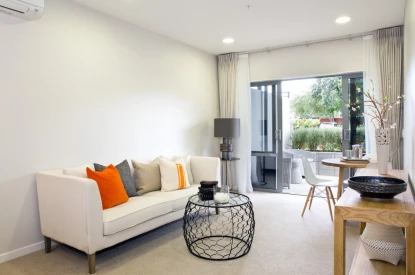 All apartments feature a balcony or patio to enjoy the sun and views, either out to the gardens or suburbs. Not just stylish, each unit is equipped for your comfort and convenience, with a heat pump, double-glazing and connections for phone, TV and internet.