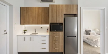 Bask in the beautiful morning sun that fills the generous bedroom and open-plan living area, all while enjoying views over the bowling green and the surrounding community. The outlook is simply fantastic, so is the location. Just step across the hallway and you’re right in the village centre, with the lounge, amenities, and social spaces, so everything you need is right at your fingertips.