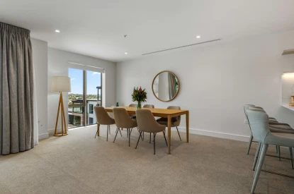 Relax and soak up the atmosphere in the stylish, open-plan residents’ lounge, with floor-to-ceiling windows overlooking Glover Park and beyond. The perfect space to unwind with a coffee or wine in hand. And when the weather invites, you can walk 10 ft from the lounge and you'll find the intimate outdoor area, with sweeping views of the Waitematā Harbour and plenty of sunshine.