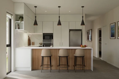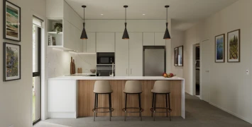 Our commitment to architectural elegance, modern conveniences, safety features, and top-tier appliances ensures that your home at Ōtau Ridge will be a cherished haven. Immerse yourself in the spacious interiors of our two bedroom villa, adorned with exquisite details that evoke warmth and comfort.