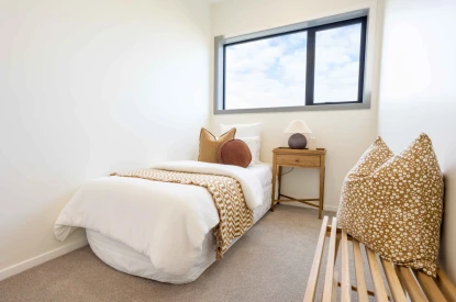 Our commitment to architectural elegance, modern conveniences, safety features, and top-tier appliances ensures that your home at Ōtau Ridge will be a cherished haven. Immerse yourself in the spacious interiors of our two bedroom plus study villas, adorned with exquisite details that evoke warmth and comfort.