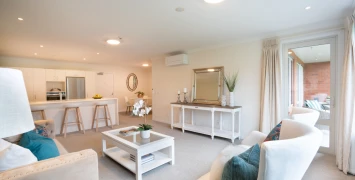 Positioned on the ground floor enjoy the morning sunshine in your in your roomy living, dining and kitchen area which flows out to a private patio. Relax with a good book and take in the tranquil, private outlook across the village gardens, perfect for keen gardeners or pet owners.