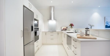 Three bedrooms and two bathrooms, hosting friends or family is a breeze. The third bedroom also offers a great opportunity to create a dedicated space for hobbies or a home office. Thoughtful storage solutions include a walk-in wardrobe in the master bedroom, a separate laundry room, a hallway cupboard, and built-in wardrobes in the second and third bedrooms.