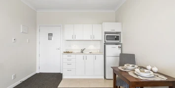 This spacious corner apartment receives loads of sunshine and enjoys fantastic views of the pond, waterfall, and bowling green – great for someone who loves to be in the centre of the action. Relax in your open plan living area or go for a short stroll to the village centre for a catch up with friends. The apartment has been freshly painted and includes a kitchenette, as well as a separate bedroom with an ensuite.