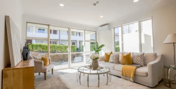 There are three accommodation types at Maygrove Village – villas, apartments, and terraced units. Villas are available in two or three bedroom configurations and all have two bathrooms. Apartments are one, two or three bedrooms. Terraced units are all two bedrooms with one bathroom.