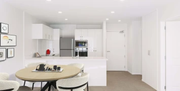 This beautifully appointed home includes a modern kitchen with Fisher & Paykel appliances, plenty of storage and ample bench space. Neutral décor throughout, including double drapes in the living area and access to a balcony. The bedroom has a walkthrough wardrobe to the bathroom finished to a high standard, complete with glass shower, heated towel rail, and good-sized vanity.