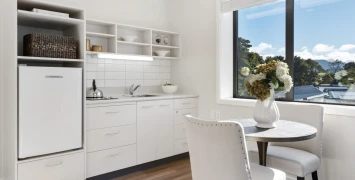 These mobility-friendly homes offer light and spacious open plan living, a kitchenette and a large ensuite and generous living areas, great for entertaining friends and family. And if your needs change, our serviced apartments generally offer, rest home level care. (Care is subject to availability and eligibility criteria).