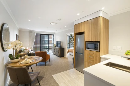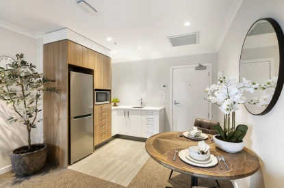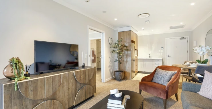 Enjoy a cosy, brand-new serviced apartment, featuring a spacious bedroom with an ensuite bathroom and a private balcony that offers stunning views of the village gardens and surrounding area. With easy lift access, you're just moments from the village lounge, dining room, and amenities. This apartment is perfect for those who love to watch village activity and soak in the late afternoon sun.
