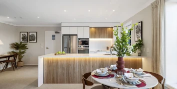 This beautiful corner apartment has extra windows and benefits from afternoon sun, making it a light and lovely space from all angles. Relax out on your private balcony with views over the village gardens or entertain friends and family in the wide and spacious open plan living area. You will find it easy to host overnight guests, with a second guest bedroom and separate toilet. The village centre and all amenities are just a short walk away, giving you the best of both community and independent living.