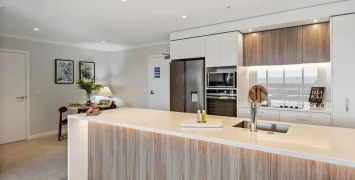 Enjoy outstanding wrap-around views from your spacious open plan living area, taking in the park, bowling green, village gardens, harbour and city skyline. This apartment receives beautiful sunshine throughout the day and includes two bedrooms, a bathroom, and separate guest toilet – perfect for hosting friends and family. A private balcony can be accessed from the bedrooms or the living area, and is ideal for a small table and chairs.