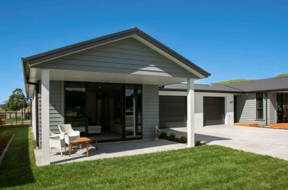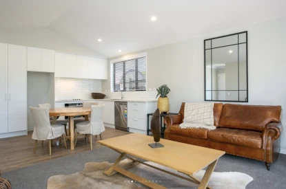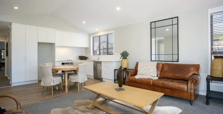 The Kauri is a contemporary two bedroom, two bathroom home. The clever design means the two spacious bedrooms and two bathrooms cater for each room perfectly. The open plan kitchen and living opens out to the covered patio area, perfect for entertaining. The kitchen features great storage and soft-close cupboards/ drawers and includes a Fisher & Paykel oven, ceramic stove top and dishwasher.