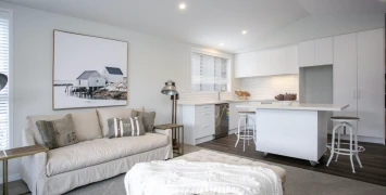 The Tōtara is a stylish three bedroom, two bathroom home. The open plan kitchen and living opens out to the covered patio area, perfect for entertaining. The kitchen features great storage, and soft-close cupboards and drawers, and includes a Fisher & Paykel oven, ceramic stove top and dishwasher.