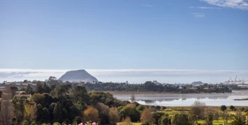 The views are simply stunning — stretching towards the Mount, across the harbour and over to Brookfield — and can be enjoyed from both inside the living area and out on the balconies. Being an end apartment, it is filled with natural light throughout the day and enjoys an added sense of privacy, giving it a warm, peaceful, and welcoming feel that truly makes it feel like home.