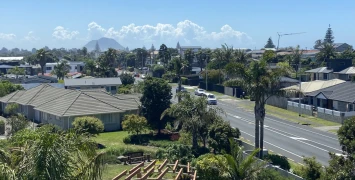 This spacious two-bedroom apartment is located on the top floor of the Palms Apartments. Enjoy views of Mount Maunganui, the Kaimai Ranges, and even glimpses of the ocean.