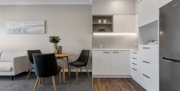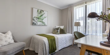 All villas and cottages are single-storey homes with private outdoor living. Serviced apartments come with a spacious double bedroom, ensuite, and separate living area. Care rooms are available in standard, premium or deluxe layouts.