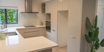 This spacious 2/3 bedroom home has been refurbished and is now available. It has two bedrooms and two bathrooms downstairs with an additional third bedroom/craft room/ lounge upstairs with balcony overlooking the Kaimais. The open plan lounge, kitchen, and dining room has doors opening on to a patio with views over the gardens and toward the Kaimai ranges. The home has been partially refurbished and showcases the high quality finish all our homes are known for. The master bedroom has a spacious en-suite bathroom with a double and single wardrobe and there is a second double bedroom with double wardrobe and full bathroom for your guests. The single carpeted garage has internal access from the house with good storage. Located just a short stroll from our village centre, it is perfectly placed to join in all the activities on offer. The home has quality carpets, gorgeous soft double tracked drapery, fully tiled bathrooms and a spacious well equipped kitchen. Our sales office is open Monday to Friday or call me to arrange an appointment to view – I would love to hear from you.