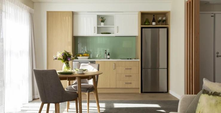Located in a recently-completed care centre, these spacious studio and one-bedroom suites express Arvida’s ‘attitude of living well’ by providing person-centred care within a family-style environment. Many suites have a kitchenette, and each suite has an ensuite bathroom, built-in storage and attractive, ergonomically-designed furniture. Personal and clinical care services are tailored to each resident’s needs and preferences.