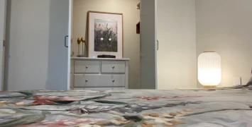 The main bedroom easily accommodates a queen bed and offers ample storage with an extra-large built-in wardrobe. A second guest bedroom off the living area provides flexibility for use as a bedroom, study, or television room.