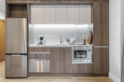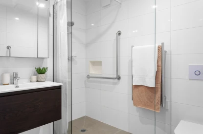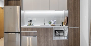 Our purpose-built serviced apartments are for retirees seeking a touch of daily support, built for optimum comfort, ease and security. The open plan kitchen, living and dining area gives the apartment flexibility for easy daily living whilst still feeling welcoming.