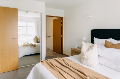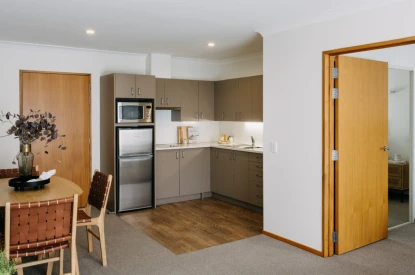 • Living Well apartment: These new two-bedroom apartments for independent living have under-floor heating, double glazing and a delightful outlook. The master bedroom comes with an ensuite and walk-in wardrobe. You also get a full kitchen, an extra toilet and either a patio or balcony. The weekly fee includes three meals a week (lunch or dinner), a weekly house clean and use of the community’s electric vehicles.