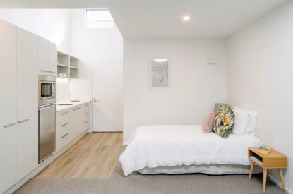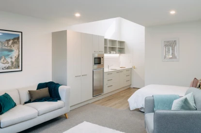 Our one-bedroom serviced apartments and studios are newly and beautifully refurbished with open plan living areas, a private patio, an ensuite and high quality appliances. They’re the perfect haven for retreating to after an enjoyable walk around our gorgeous grounds, a trip out to Hagley Park or a game of cards with friends.