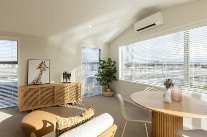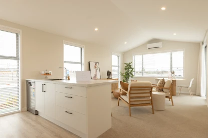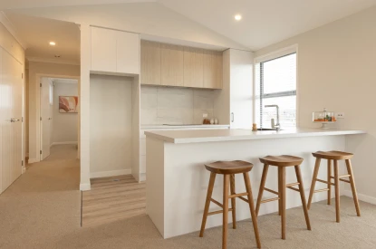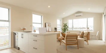 Whether you like to entertain or simply enjoy your own space, you will love the relaxed feel of The Oxford. Plenty of thought has gone into this home’s spatial design, and the incline of the raked ceilings elongates the living space. Smart storage solutions and the timeless colour scheme make it is easy to turn this lovely house into your home.