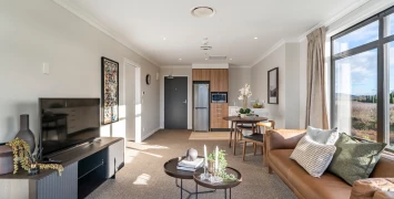 This spacious corner apartment with extra windows offers all day sun from either your bedroom or living area. Pull back the sliding door in your bedroom and enjoy the views from your private balcony, overlooking Karamu Stream, orchards, and the ranges beyond. Maintain your independent lifestyle by preparing light meals and snacks in your kitchenette or go for a short stroll to the village centre for a coffee catch up with friends.