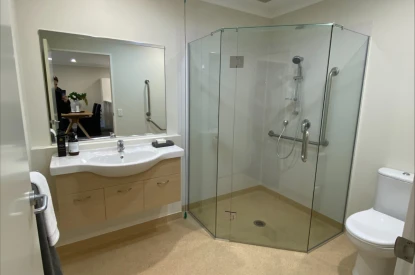 Call bell system, electric doorbell, wall-to-wall floor coverings (carpets and vinyl), wiring for Freeview, grab rails in shower and toilet, slip resistant linoleum, heated towel rail, laundry tub, automatic garage ...