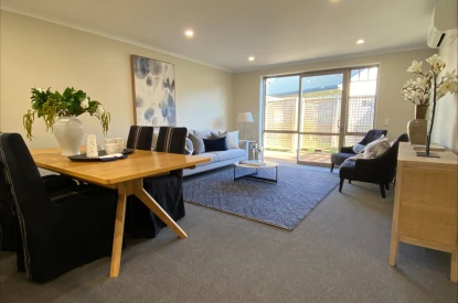 All townhouse feature open plan living and dining, single garage with internal access, double glazed windows, and every townhouse has a private outdoor paved and trellised patio area.