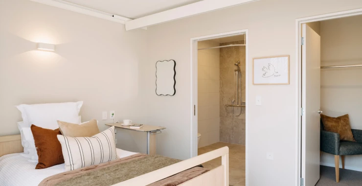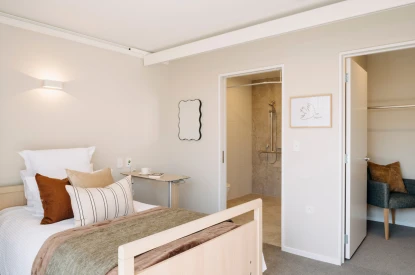 A new alternative to care and support for The Wood, these studio and one-bedroom suites are cleverly designed to support resident-led care within an elegant and comfortable environment. They offer significant advantages over traditional rest home rooms, including built-in (but hidden) medical fittings that allow hospital-level care when needed. All suites have an ensuite bathroom, built-in storage and emergency call system; all also have a kitchenette or kitchen. There are standard or premium options available. If you’re interested, get in touch soon.