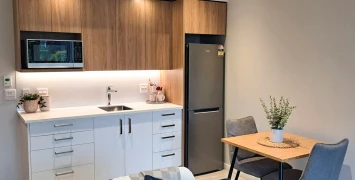 Enjoy walking out onto your own ground floor private patio area from your lounge. This serviced apartment offers an open plan layout, kitchenette, and a beautiful bedroom with ensuite. Soak up the ...