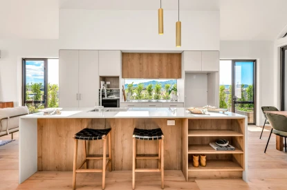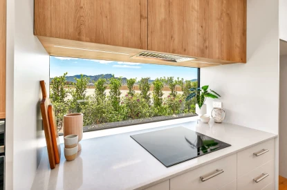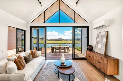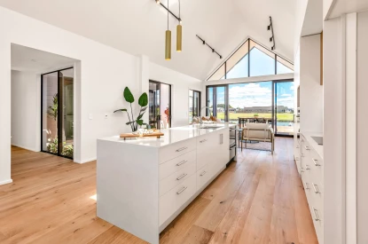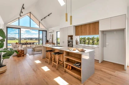 Featuring a contemporary open plan living with vaulted ceilings in the living area, designed to maximise light and compliment the indoor-outdoor flow.