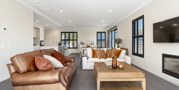 Furnishings include New Zealand wool carpet, luxurious drapes and sheers and easy care designer shutters.
