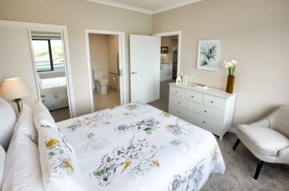 They offer light and spacious open plan living, a kitchenette and separate double bedroom with a large ensuite. And if your needs change, our serviced apartments will also offer, subject to certification, rest home level care. (Care is subject to availability and eligibility criteria).