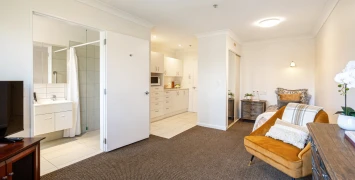 Step into this freshly refurbished, cosy top-floor studio apartment and enjoy a perfect blend of comfort and convenience. Recently refreshed with new paint, this inviting unit offers a private setting bathed in warm afternoon sun. The front door opens directly to the atrium, placing you just moments away from the vibrant village centre, amenities, and welcoming social spaces. Relax and take in the serene views of the beautifully maintained village gardens, all while embracing the friendly and engaging community around you.