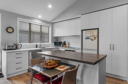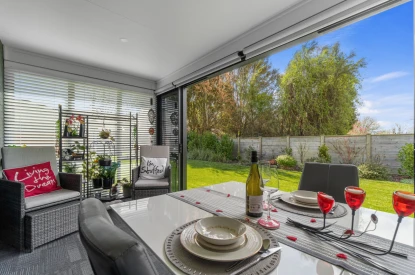 The largest of our homes on offer at Matamata Longlands, this stand-alone villa boasts spacious open-plan living with raked ceilings, including a beautiful kitchen featuring modern appliances and an addition of a central island. The lounge opens up to a north-facing enclosed deck area; make the most of all weather in this space, throw open the doors in summer or cosy up with a good book on a cold winter day. The generous master bedroom includes a walk-in wardrobe and a well-designed ensuite. The additional two well-proportioned bedrooms both boast closets for extra storage, and a modern bathroom is a welcome addition to this home. Neutral colour tones complete your new home, along with stylish blinds and drapes. The internal access double garage allows you plenty of additional storage space; the laundry is located in the garage.
