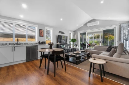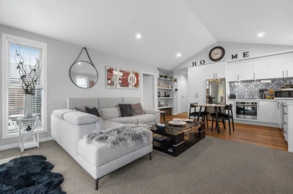 Current occupiers have thoughtfully put their personal stamp on this modern and welcoming home. The open plan design with raked ceiling, creates a flow between the generous living areas. This villa boasts a well-designed kitchen with high-quality fixtures and appliances.